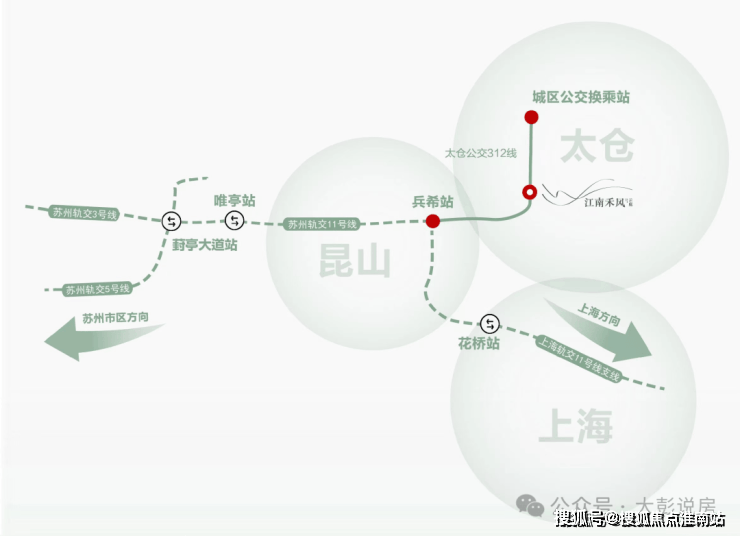 路轨纵横 驰骋长三角动脉项目邻靠前进路、胜泾路、烟沪线国道),便捷接入两高(京沪/沈海高速),同频太仓“5+1”轨道交通网络(建设中),公交路线路自江南禾风站,向西链接苏州轨交11号线,向东至科教新城客运站换乘60路,102路,112路,128路,以多维立体交通便捷出行长三角。(资料来源于太仓发布官微)