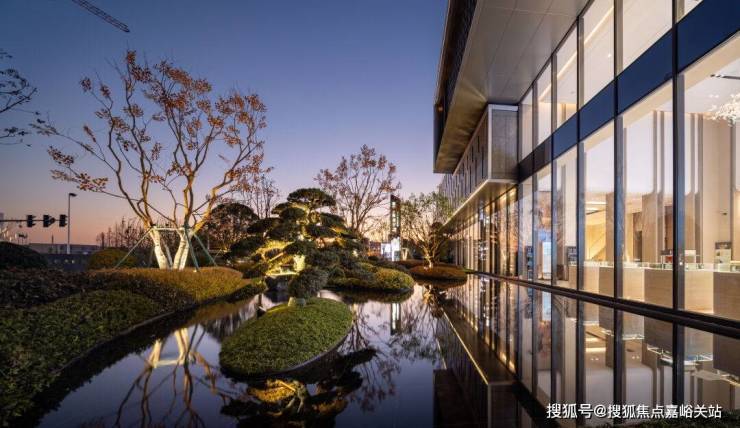 以多种名贵植物的阵列形式,打造星级酒店式入户门仪,同时高层及洋房单元入口更设有约0.9m的高景墙,沉稳质感,营造摩登奢雅的尊崇体验。