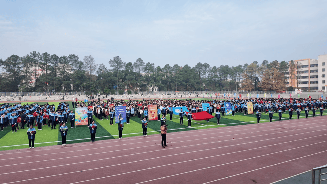 国旗方阵、校旗方阵、会标队、鲜花队、彩旗队及各班级代表队、裁判员代表队依次入场,着装统一,步伐整齐,展现出师生积极向上的精神风貌。