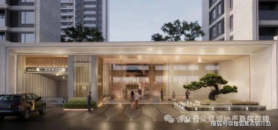 以“顶级酒店入口仪仗”为蓝本,叠加东方“松石水韵”意境。约60米舒展形象展示面营造“步入即显贵”的仪式感;约30米艺术豪奢定制门厅,弱化传统社区门庭的阻隔感,强化尊崇迎宾感。
