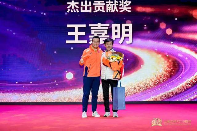 在吉祥青训 10 岁生日活动现场,作为吉祥青训女足带头人的王嘉明教练,从弟子周雅洁手中接过了代表感恩的鲜花。作为吉祥青训培养的优秀女足队员代表,年仅 18 岁的周雅洁已经拿到了上海成年女足一线队职业球员的合同。作为前中国女足主帅水庆霞的丈夫,王嘉明同样也是女足青训培养的优秀教练,在上海足坛有着女足青训“老法师“的外号。